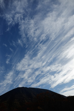 「巻雲(けんうん)」も上層(5000~13000m)にでき、偏西風が強まりだす秋になると出現する美しい筋状の雲です。