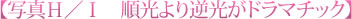 写真Hのように順光だと空以外の地物もすべて見えてしまい、メリハリがなくなってしまいます。