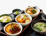 地産の「あさくら豚米」を豚汁とダシ茶漬けと、別々の味で楽しめる丼です。地元のお米を食べて育てた地域自慢のポークを2通りの食べ方で楽しませるのですから、そのアイデアはなかなかのもの。ぜひ食べてみたい逸品です。