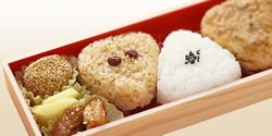 米どころの新潟では“おにぎり”のお弁当がいちばん。塩おにぎり、南蛮特有の辛味がある“かぐらなんばん味噌おにぎり”、もち米を利用した“しょうゆおこわおにぎり”と、お米の味を堪能できます。