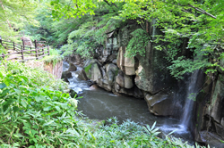 秋保温泉入口の覗橋から全長650mにわたって遊歩道が続く磊々峡。奇面巌、時雨滝など見どころがたくさんある