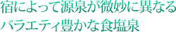 泉質はほとんどが、旧泉質名でいう食塩泉だが、宿によって源泉が異なるために、微妙に湯の質が異なるというのが興味深い。