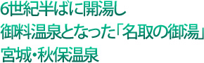 秋保温泉の歴史は古く、里伝によると、欽明天皇(509?-571?)の御代に存在していたというから驚きだ。