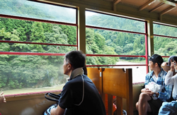 それだけに、訪れる外国人観光客は多い。トロッコ亀岡駅のホームにも観光バスで到着した中国人、韓国人、個人で旅行しているというアメリカ人、フランス人たちが大勢いて、記念撮影に時間を費やしていた。