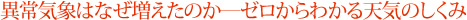 「この知識が、あなたの身を守ります!」とあるように、観測史上1位、記録的といった冠言葉が付くような近年の異常気象を徹底的に解説しています。異常気象の原因、そこに潜む危機と、そこからの回避を学びましょう。