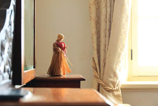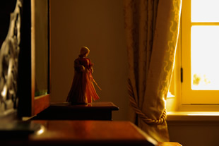 窓辺に置かれたお人形。「太陽光(写真H)」から「日陰(写真I)」へ設定を変更しました。日中の撮影ですが、WB設定を「日陰」に変えたことで、写真の黄色っぽさが強くなり、いかにも夕暮れの光があたったような雰囲気が感じられます。露出も少しマイナス補正をかけています。