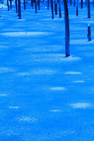 写真Mは北海道の美瑛町にある青池の氷紋の写真ですが、池の青色が連想できるようにとWB設定を「電球」にしてみました。