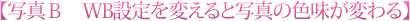 とここで、今回駆使してみたいカメラの設定に、写真全体の色合いを変える「WB設定」があります。今回はWB設定についても解説してみたいと思います。