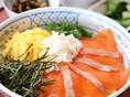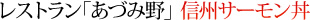 信州のご当地ブランドでもある「信州サーモン」をごはんの上にたっぷりと乗せたご当地丼。白馬山麓には八方尾根、栂池高原、岩岳、白馬五竜などの日本有数のビッグゲレンデがそろっています。朝食はしっかりと食べたいものです。
