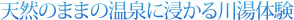 まずは自然のままの温泉を紹介しよう。その代表格が「川湯」だ。河原で湧く高温の湯に川の水が混じって適温になっていたり、湯が流れて行くうちに冷めて適温となって入れる温泉だ。