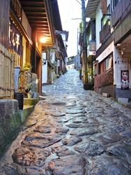 湯平温泉には石畳の路地もあり、風情を感じさせる