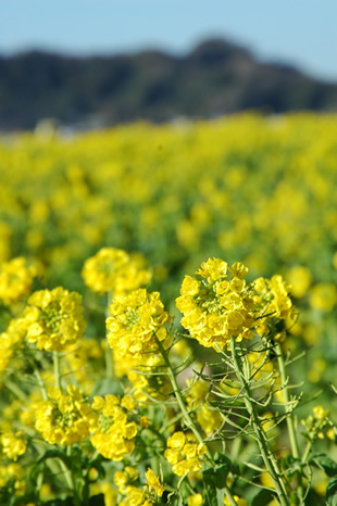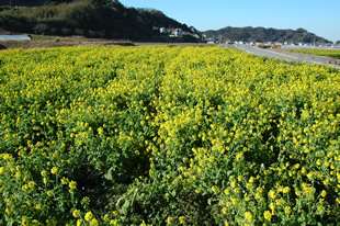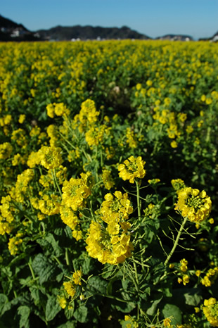 早春の房総半島をドライブしているときに見つけた菜の花畑です。