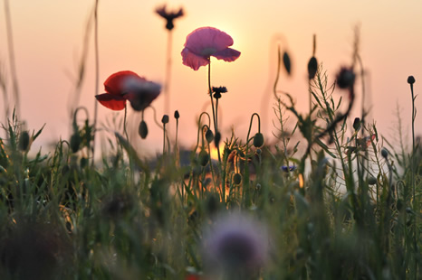 花を目立たせる場合、背景が見えてしまうとごちゃごちゃした印象となったり、逆にぼやけすぎてしまって花畑の印象が弱まったりします。
