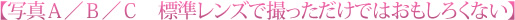 いわゆる標準レンズでは、見たままを写そうとしてしまうため、比較的被写体を近くで撮影している場合がほとんどです。