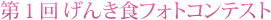 「あなたのげんきが出た食事にちなんだ画像にコメントをつけ、投稿してください」が主旨の写真コンテストです。「真心を込めて作った料理」「隠れた名店 おすすめのお食事処」「仲間とおうちごはん」などを撮影して応募してください。