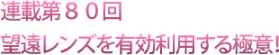 「小さなものが大きく見える!」は望遠レンズの利点です。その機能をより有効に活用して、素敵な1枚の写真をものにしてみませんか? 望遠レンズ活用法について越カメラマンが解説します。恒例の写真コンテスト情報、壁紙プレゼントもお楽しみに!