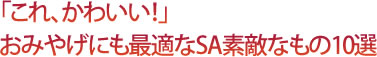 休憩場所、お腹を満たすところといったイメージが強いSAですが、ショッピングコーナーをまわってみれば、欲しいもの、かわいいもののオンパレードです。今回は首都圏と京阪神地区を中心に、そんな素敵グッズ10選を集めてみました。