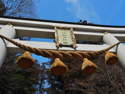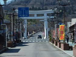 岩畳とは反対側の国道方面を見ると、大きな鳥居が目に入ります。これが、寶登山(ほどさん)神社の鳥居です。