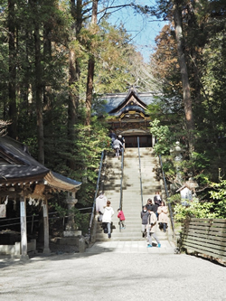 クルマを止めて、茶店を横目に二の鳥居に向かいます。二の鳥居を過ぎ、長めの階段を上れば、その先に御社殿があります。
