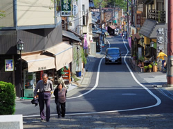 総門と三門の間の参道は、両側が商店街になっています。参道らしい仏具店が多いのですが、“縁起物”を扱うおみやげ店、名物の大豆を使った豆腐店、地酒を扱う店なども多くあります。