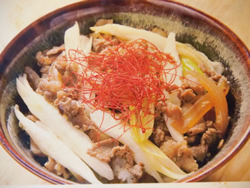 写真を掲載したのは、JR下部温泉駅の駅前にある丸一食堂の「馬鹿(うまか)丼」。地元食材を使った馬と鹿肉を使ったジビエ感覚の丼です。