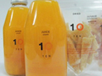 温州みかんのジュースです。安全と安心をテーマに無添加で作った100%のジュースはビタミンと水分の補給にぜひ。写真右側にあるのは「河内晩柑ドライフルーツ・ピール」です。晩柑の風味を楽しんでください。