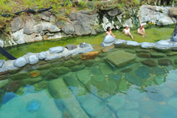 女性もバスタオルを巻いて、あるいは水着着用で入れるのだが、「自然の恩恵」という言葉が頭に浮かぶほどのぜいたくな湯だ。