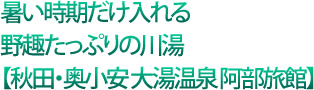 「地獄釜」と呼ばれる、温泉が岩壁を伝って湧き、湯気が噴き出す大噴湯が名物の小安峡。その景色だけでも温泉が豊富な土地であるのがわかりますが、その奥に位置する阿部旅館は、暑い時期だけ入れる特別な温泉をもつ一軒宿でした。