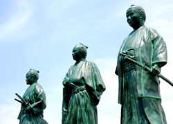 右より中岡慎太郎、坂本龍馬、武市半平太像(高知駅前)