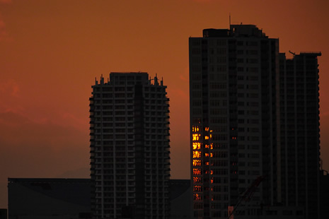写真Aのように、シルエットになっているビル群の一部だけが夕日を反射していることで、画面全体で見たときに非常に強いメリハリを感じる、そういった写真です。