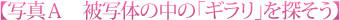 日中は「ギラリ」をほとんど見つけることができません(写真B)。むしろ、朝方や夕方が近づくにつれ見つけやすくなってきます(写真C)。