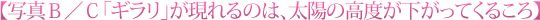 「ギラリ」を撮ろうとした場合、大切になってくるのが太陽の高度です。