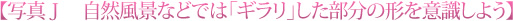 前回、「逆光で写真にメリハリをつけよう」という話をしましたが、今回は別な手法で写真にメリハリを付けようというアドバイスです。