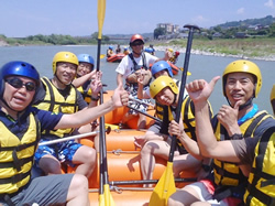 仲間のひとりがスマホで検索し、天竜川でラフティングができるのを見つけた。