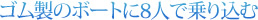 いずれにしても、合計9人が乗り込んだゴム製ボート、底部分は厚みがあって岩にこすれても頑丈、上部は弾力があって座り心地がいい。底には穴が空いていて、入ってしまった水が自然に抜けるように工夫されている。ゴムボートではあるが、なかなかしっかりした作りだ。
