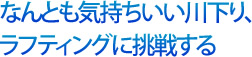 ラフティングとは“ラフト”を用いて川下りをするレジャースポーツだ。ラフトがゴム製のボートである場合が多いが、ラフトそのものは浮力によって航行する小型のボート状のものを指す。たとえば、イカダもラフトの一つである。