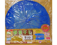 本来は干し野菜や乾物保存などに使うのですが、アウトドアで重宝する逸品です。秋に収穫した野菜類だけでなく、ネットが虫を防いでくれるのでアウトドア用の軽い食器類などを入れるのにも最適です。