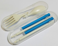 これがひとつあれば、お箸、スプーン、フォークの3役をこなします。ケースに入っているので、持ち運びにも便利。まさに、アウトドアに適した商品です。