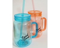 プラスチック製で割れる危険の少ないジョッキ型のコップです。蓋とストローも付いています。アウトドアのテーブルは、どうしても安定感が足りません。その点、これなら小さな子どもでもこぼす心配がありません。