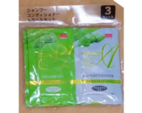 旅行用のシャンプーとコンディショナーのセットです。旅行用の利点は“液漏れ”しないこと。キャンプ場のシャワーやバスタイムに最適です。