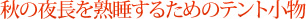 猛暑時に比べれば、秋のキャンプは気温もちょうどよく、テント内で熟睡できる条件が揃っています。さらに、こんな小物があればいうことありません。