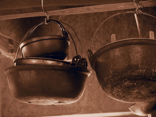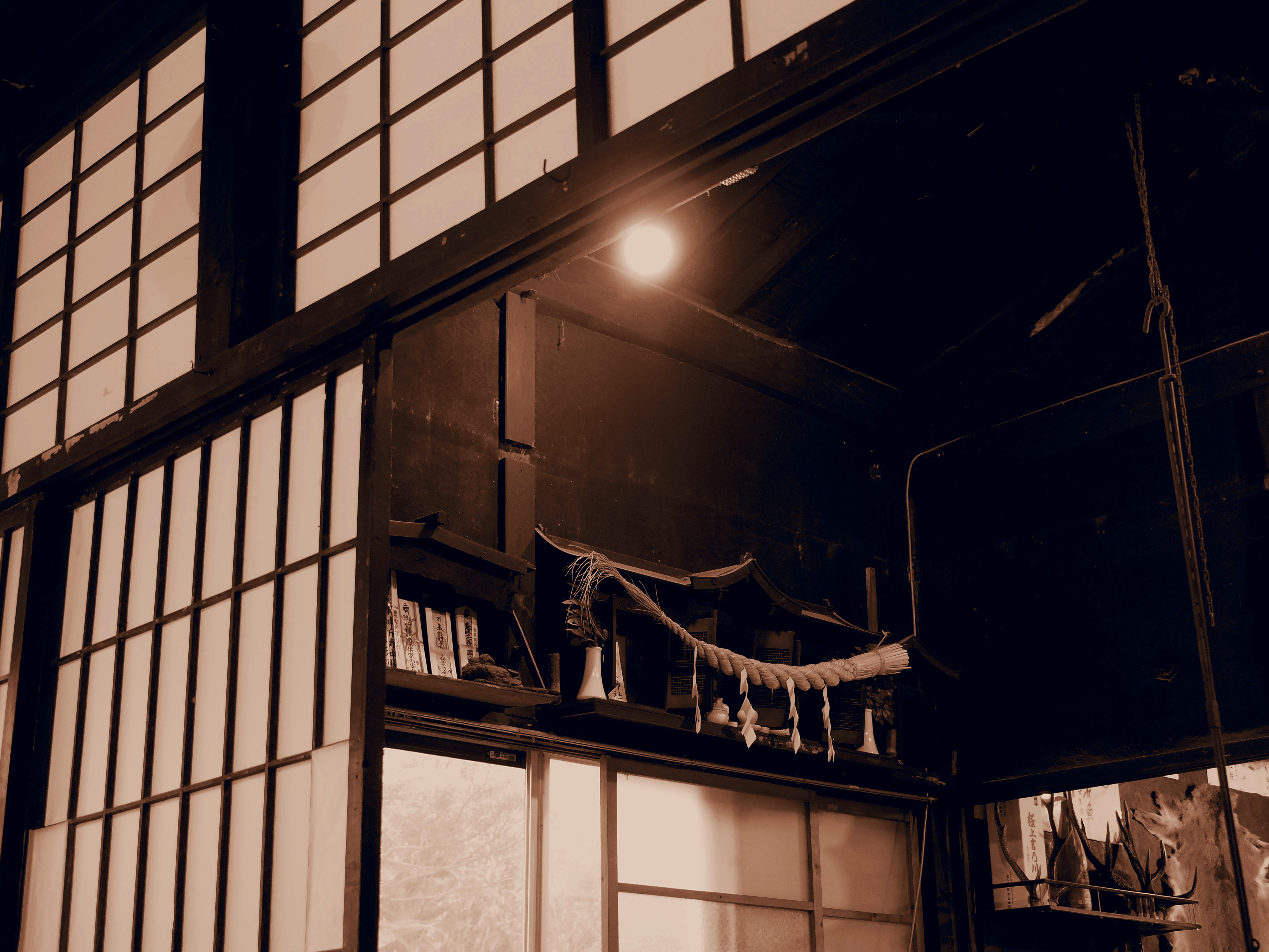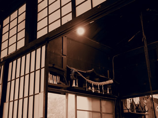 伊那谷奥の集落に築100年前後の古い民家がありました。内部を見せていただくと、神棚がきちんと飾られ、台所には鍋がかかっていました。手作りのわら草履も干してあり…。都会では忘れられてしまった空間がありました。