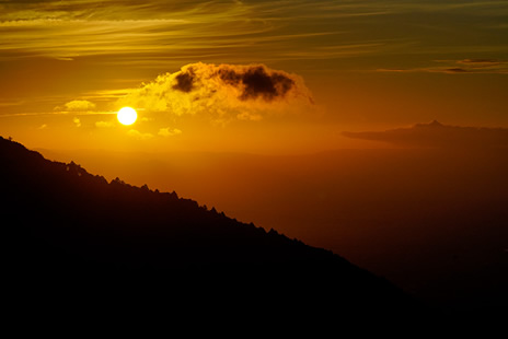 写真Hは山頂から見た夕日ですが、手前側の山並みが完全なシルエットになり、画面にメリハリがなくなってしまっています。もし、山並みに雲海が掛かる日であれば別ですが、そうでもなければあまりオススメできません。