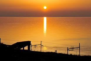 写真Bと写真Cは新潟県にあるJR信越本線の青海川駅です。海に最も近い駅などとして知られ、近くには夕日スポットで名高い柏崎恋人岬がある人気のドライブルートです。同じように水平線近くに太陽が見られましたが、光が少し弱くキレイな丸になった写真Bの日に対し、写真Cの日は水平線に日が落ちるまで煌々と輝き、丸い形を写し撮ることができませんでした。