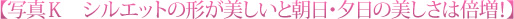 ちなみに写真Kは「日本の夕日百選」に選ばれる新潟県佐渡島の七浦海岸です。