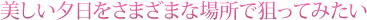 海岸、湖畔から都会の高層タワーまで、日本の夕陽ポイントが揃っています。越カメラマンが解説するように、夕陽のまわりにどんな風景を入れたいかをイメージして撮影旅行にでかけてください。