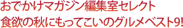 秋から晩秋はおでかけの楽しい季節。レジャーも楽しめれば、食べることも楽しい!