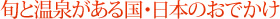 また、日本は四季がある国ですから、旬がはっきりしています。もちろん、ハウス栽培などで通年で売られる農産物も増えましたが、海鮮なども含めて“旬”がはっきりしています。おでかけの目的が旬のグルメだったということも少なくありません。