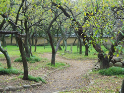 ニワトリは林に囲まれた環境の中、とくに囲いがあるわけでもないので、境内を自由に歩きまわっていました。