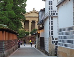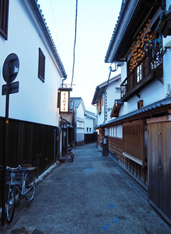 美術館方向に続く蔵と土塀の間の路地をいくと、視界が一気に開けます。観光客がカメラを構えるのもこのあたりです。